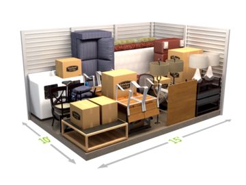 A 10×15 holds the contents of three full rooms of furniture, a large office space, or a small house. You’ll have plenty of room for multiple pieces of large furniture such as sofas, beds, pianos, and office desks. You’ll also have room left over for all of those smaller items.