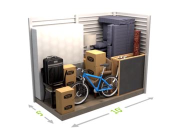 A 5×10 is a great sized unit for storing the contents of one, possibly two bedrooms or office spaces with small pieces of furniture. With 50 square feet of space these units easily store small bedroom, living room, or office furniture, and outdoor items such as bicycles, patio furniture, and lawnmowers.